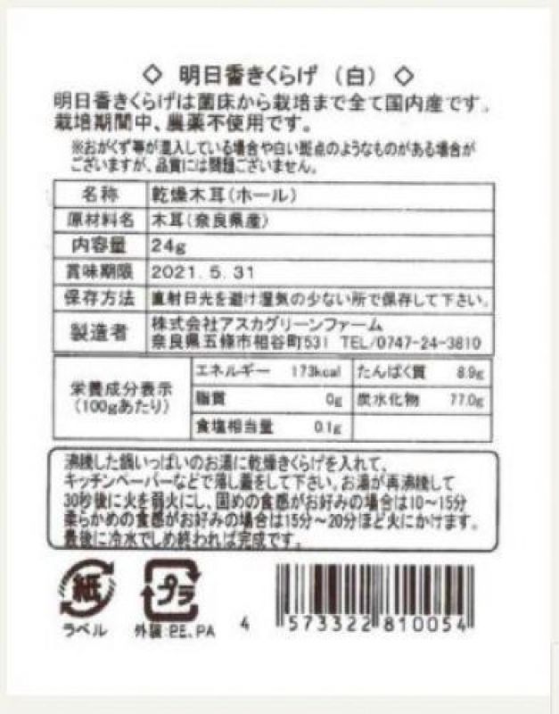 原材料:奈良県産きくらげ、内容量:24g