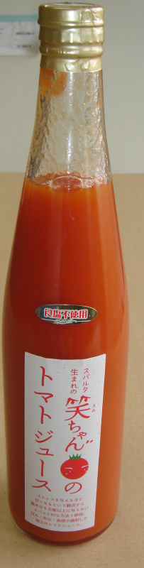 フルーツトマト「スパルタ生まれの笑ちゃん」のみを100%使用して製造され、深い甘みを味わうことができる濃厚なトマトジュースです。