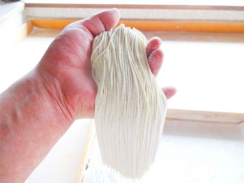 人肌のわずかな熱にも敏感なそばの香りにも心を配り、熟練の手打ちの技術により香りを最大限に楽しめ、