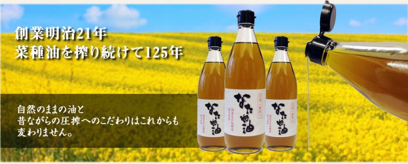 ヤマキ食品の菜種油は、化学処理に頼らない昔ながらの製法にこだわり続け、自然の成分を十分に活かした、一番搾り圧搾無添加です。