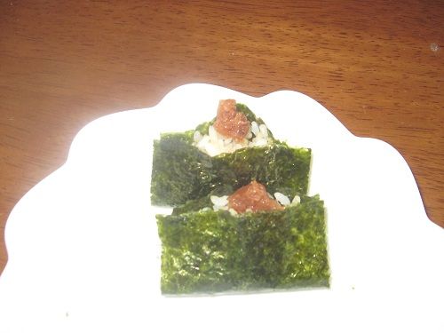 これは、ご飯が一番合うと思い普通に梅おにぎりをチョットかえて最初から炊き込んでみました。