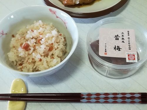 次に炊き込みご飯にして食べたのですが、加熱しても梅の味や香りが衰えることなく、塩加減もちょうど良い感じで箸がどんどん進みました。