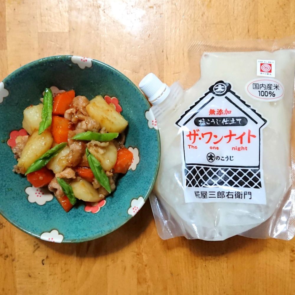 普段は液体タイプの塩こうじを使っていましたがこのザ・ワンナイトはとろっとした塩こうじでよく絡みいつものよりコクを感じました。