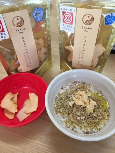 毎日ヨーグルトを食べているので、生のリンゴの代わりにこのチップスを乗せて混ぜて食べてみたところ、ヨーグルトの味に負けず、リンゴの甘味を感じることができて美味しく頂きました。