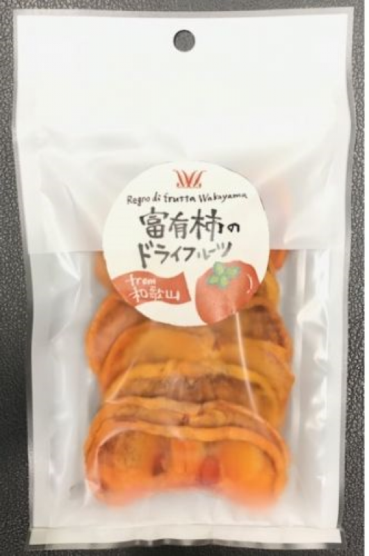 和歌山県といえば柿の産地。全国No.1の産地です。その中でも「富有柿」のブランド産地で有名な九度山町で収穫された富有柿を使用しております。甘柿の王様と言われるほど果汁が多くて甘みも強く、果実も大きくでキレイオレンジ色をしております。手作業にてスライスし低温で、じっくりと約24時間かけて乾燥させます。砂糖不使用、香料不使用、添加物不使用ですので、富有柿本来の濃厚な甘さと余韻を存分にお楽しみいただけます。