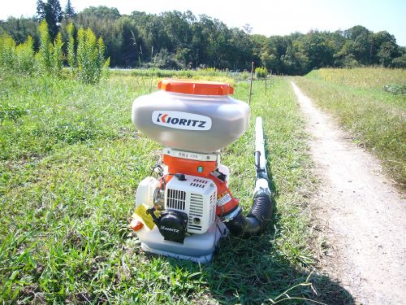 ひと昔前まで、春の景色の代表と言えばレンゲ畑でした。そのレンゲも今では私達の周りからすっかり姿を消してしまいました。宝塚はちみつでは、養蜂場近辺の農家の方々にお願いしてレンゲの種を蒔かせてもらっています。写真は動力噴霧器、これにレンゲの種を入れて蒔くのです。これにレンゲの種を入れると12、3キロの重さになります。これを肩に担いでモーターを回し、種を遠くまで噴射するのです。これを買う前は全て手で蒔いていましたが、とんでもない重労働でした!若い頃かなりハードな武道をやっていたので体力には自信があります。つくづくやっていて良かった!と今思います。