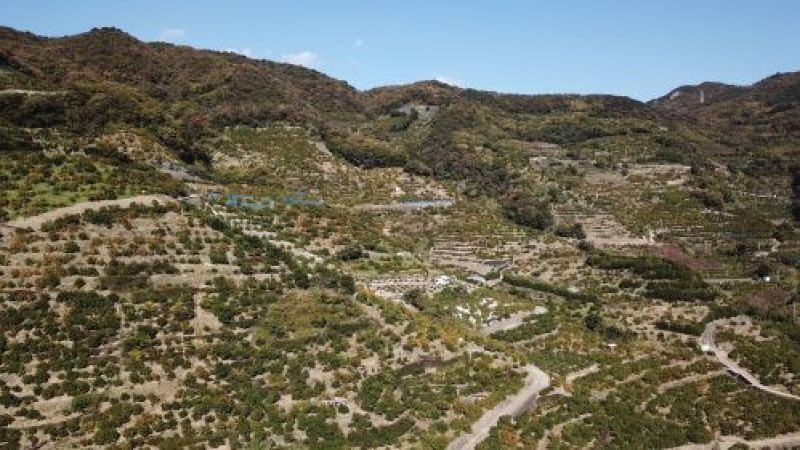 伊藤農園がある有田市は、傾斜地のほとんどが石垣の段々畑になっている全国でもめずらしい地域です。石垣は保温効果、排水効果、光の反射効果があり、おいしいみかんづくりの秘訣です。平地に比べ移動が困難なため、栽培や収穫にはかなりの手間ひまがかかりますが、より強いコクと甘みのあるみかんをつくることができます。