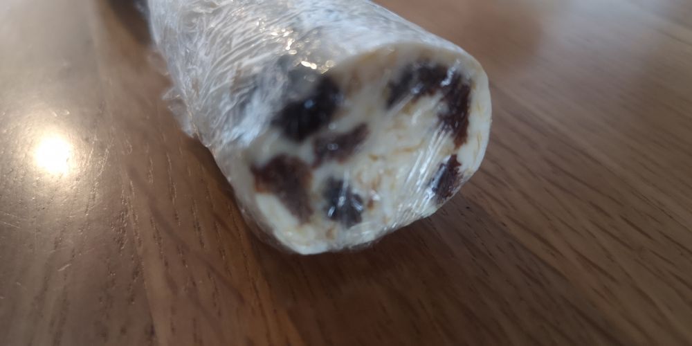 - よくドライフルーツは使用するのですが、少し扱いが難しかったです。一口、そのままで食べてみましたが、そのままではない方が良いと思い、果肉部分だけを使用して、クリームチーズ、レーズン、ココナッツと混ぜてみました。レーズンとココナッツのあまみの中にいいアクセントになりとっても美味しかったです!