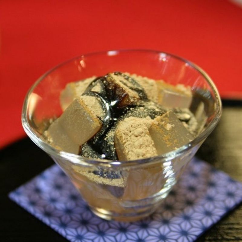 サイコロ状にカットしたところてんに香ばしい国産きなこと黒蜜をかけていただく、すっきりとした後味の和スイーツです。