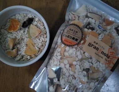 大麦メインのシリアルは初でしたが、ドライ柿とドライ蜜柑は珍しいのでかなり楽しめました。