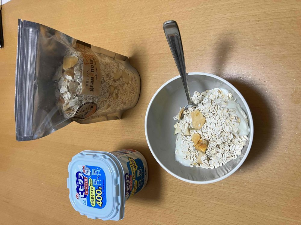 開封してそのまま食べる事も出来ましたが、口の中の水分をゴッソリ持っていかれるので豆乳ヨーグルトをかけて頂きました。