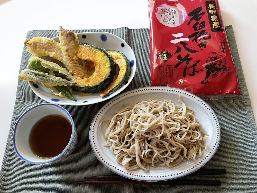 冷凍のお蕎麦を初めていただきました。冷凍うどんは度々購入しますがお蕎麦は冷凍が出来ないと思っていましたが 解凍していただくとお店のお蕎麦と変わらない歯ごたえや香りでした。季節の野菜(万願寺とうがらし ささげ なす かぼちゃ 鶏肉)を天ぷらにしてお蕎麦に添えていただきました。久しぶりにお蕎麦屋さんに行ったようでした。有難うございます。(試食モニター)