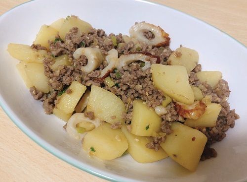 豚ひき肉&じゃがいもの味噌炒めは家にあった材料で簡単に作ったものでしたが伊豆食の味噌を入れることで上品な味になりいつもの違った味付けで楽しめました。