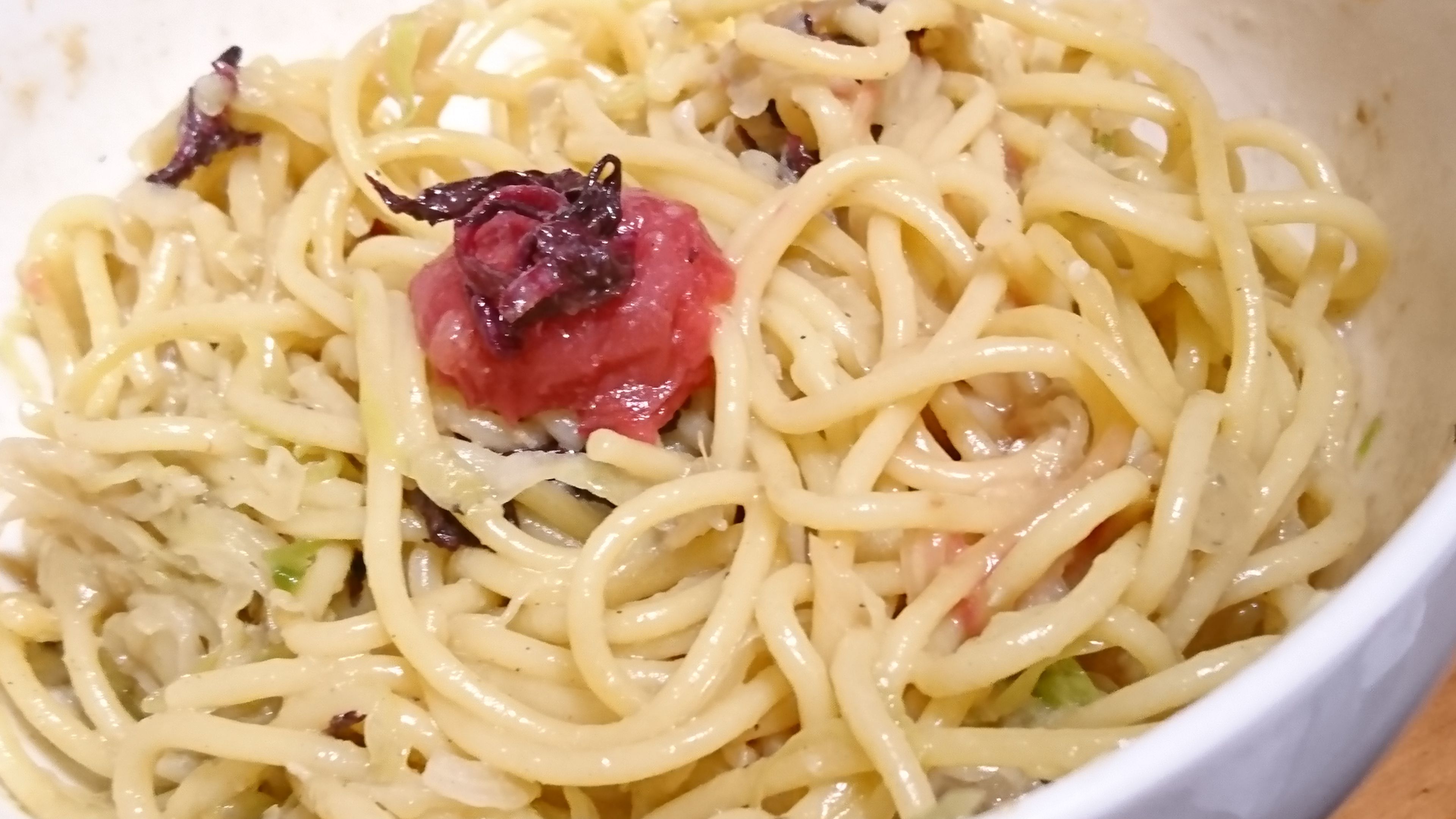 梅干しと一緒に食べると、味が引き立ちました。