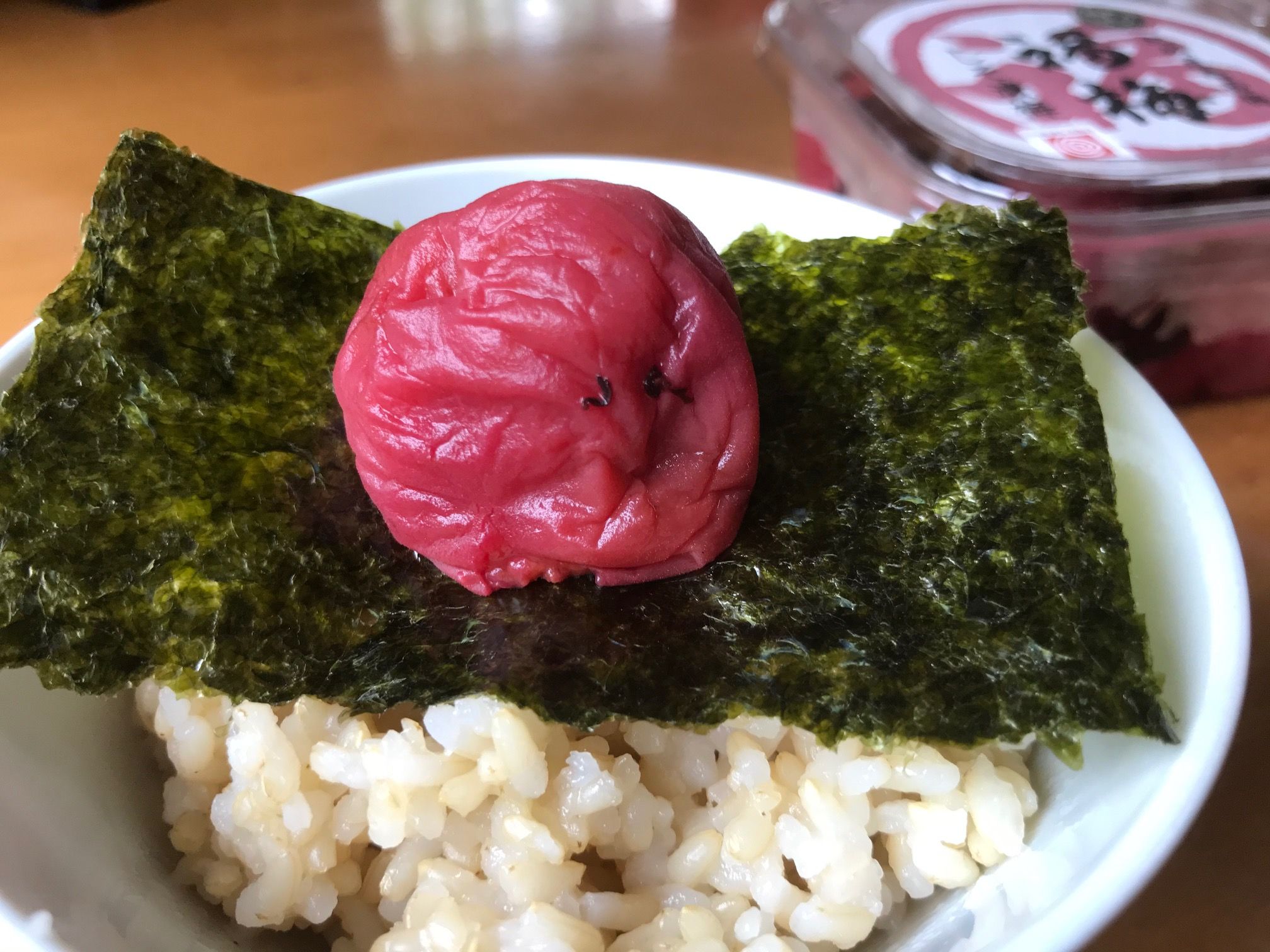 今日、家で朝ご飯としてシンプルに梅干しご飯として海苔と一緒に頂きました。