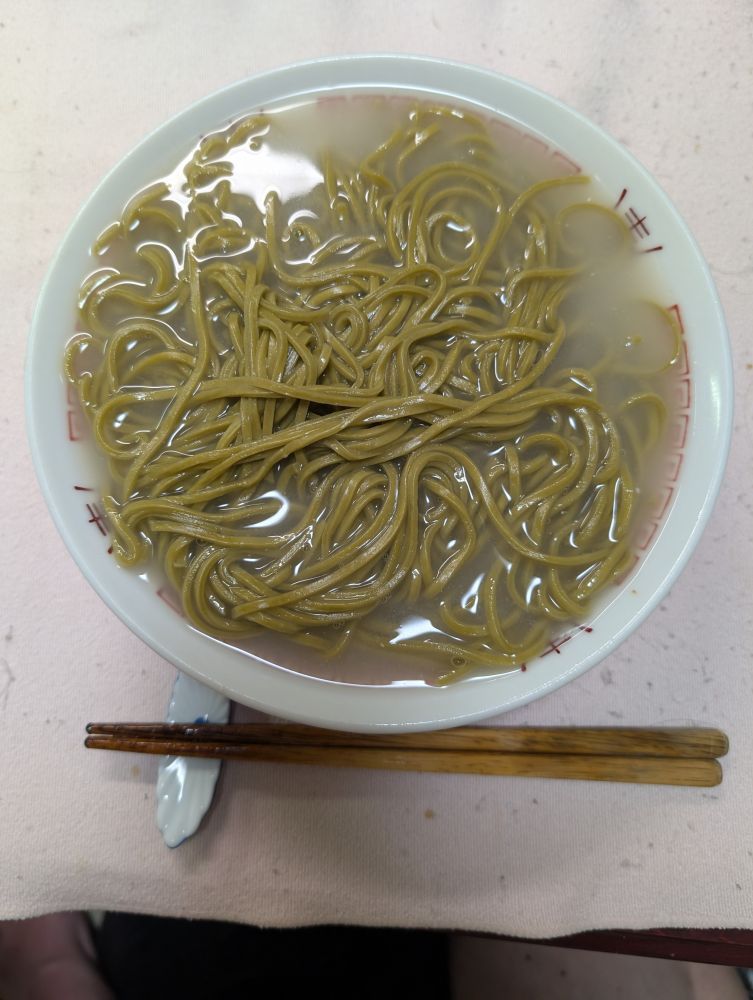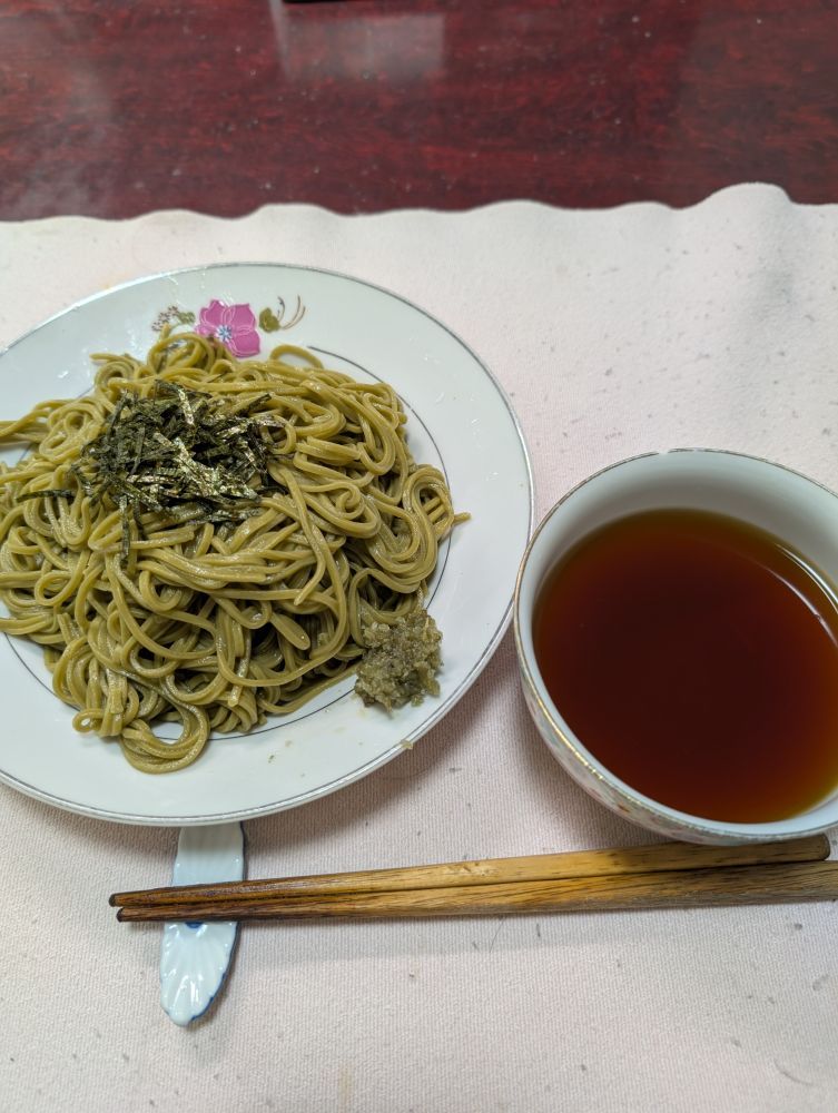 先ずは茶そばを一口食べると、昨日により濃厚なお茶の香りが口の中に拡がりました。そして、2人前の茶そばを食べ終わるまで、お茶の香りは口の中を喜ばしつづけました。