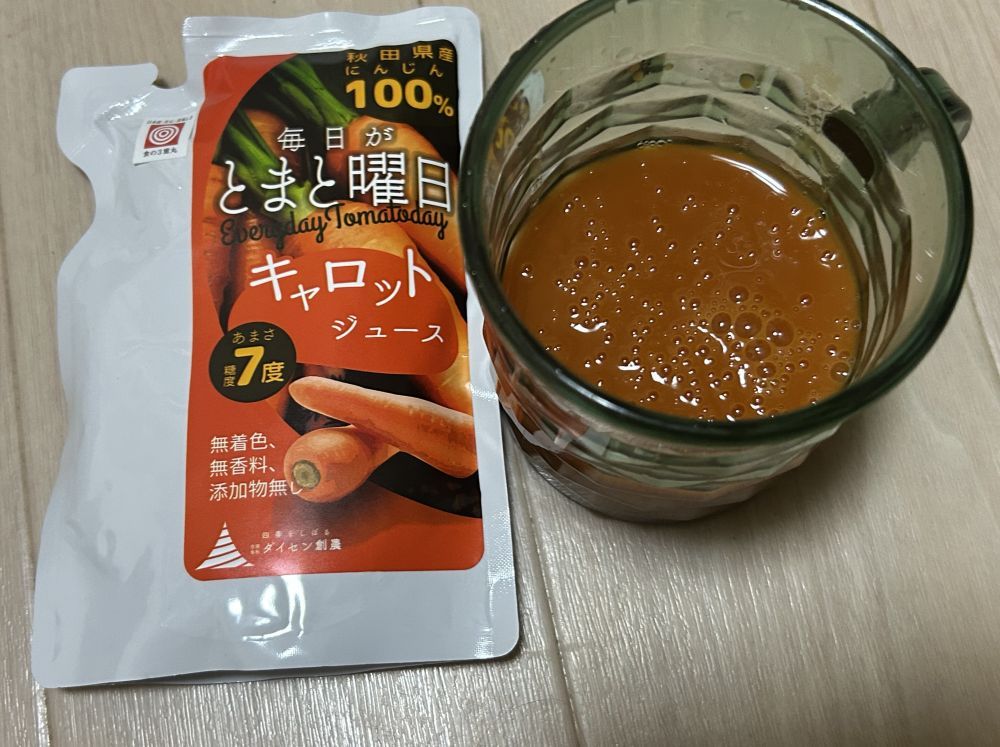 キャロットジュースと知らないで飲んだら、トマト?かぼちゃ?どっちかな?と思うくらいに人参さが良い意味でありません。