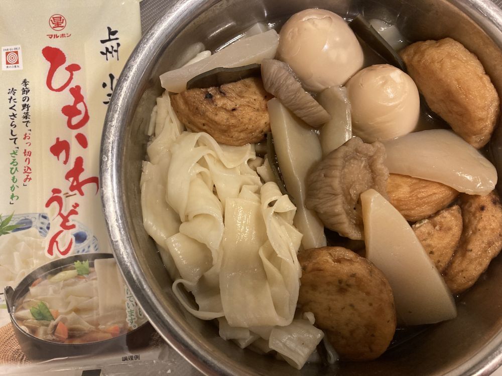寒い冬に温かいものが食べたくなるこの季節、おでんの中にひもかわうどんを入れて頂きました。おでんの中に入れると、麺ですが「ちくわぶ」のような要素も感じます。煮過ぎると麺が崩れますが、汁を吸った麺はそれはそれで美味いです。ひもかわうどんは、色々なアレンジが出来そうなのでまた別のメニューで活用したいです。(試食モニター)