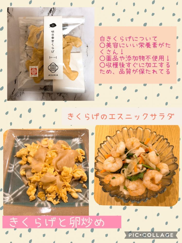 また、白きくらげ特有の美容にいい栄養素が入っていることや薬品などを使用していないとのことなので、日々の健康にも役に立ちそうです!!
