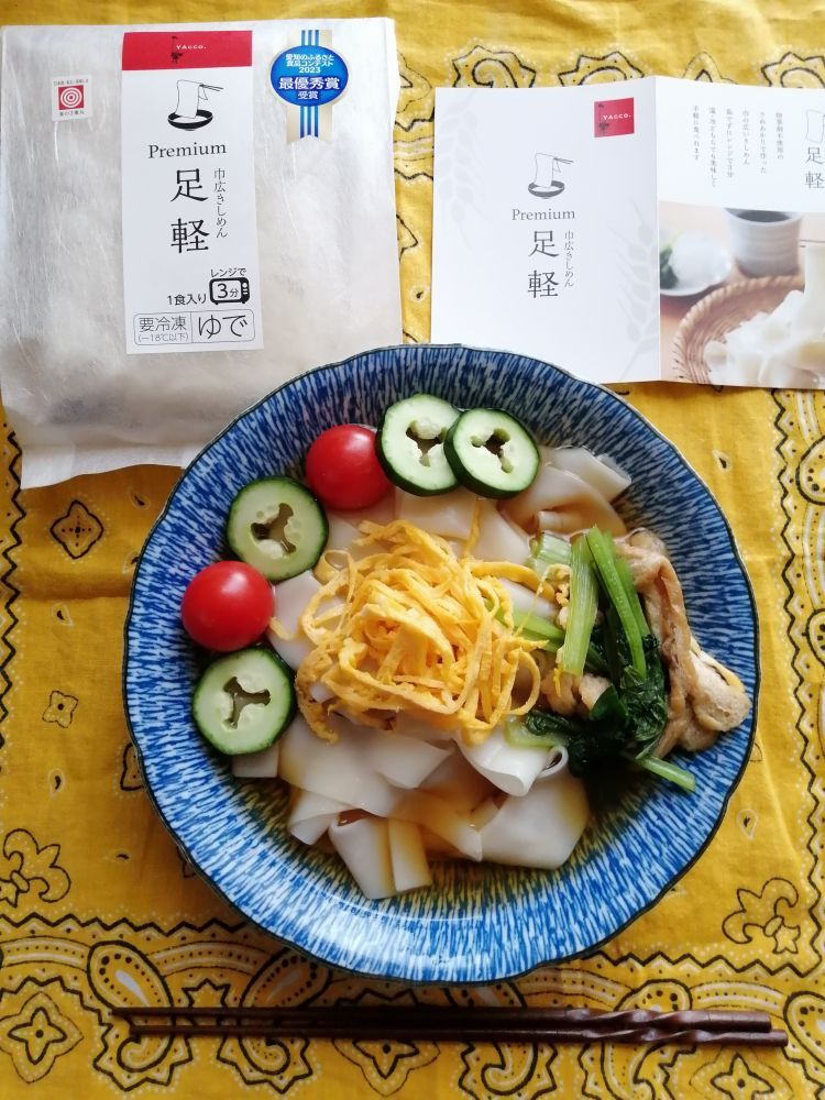 温かいきしめんで食べようと思いましたが、今日は暑かったので冷たいきしめんを作りました。