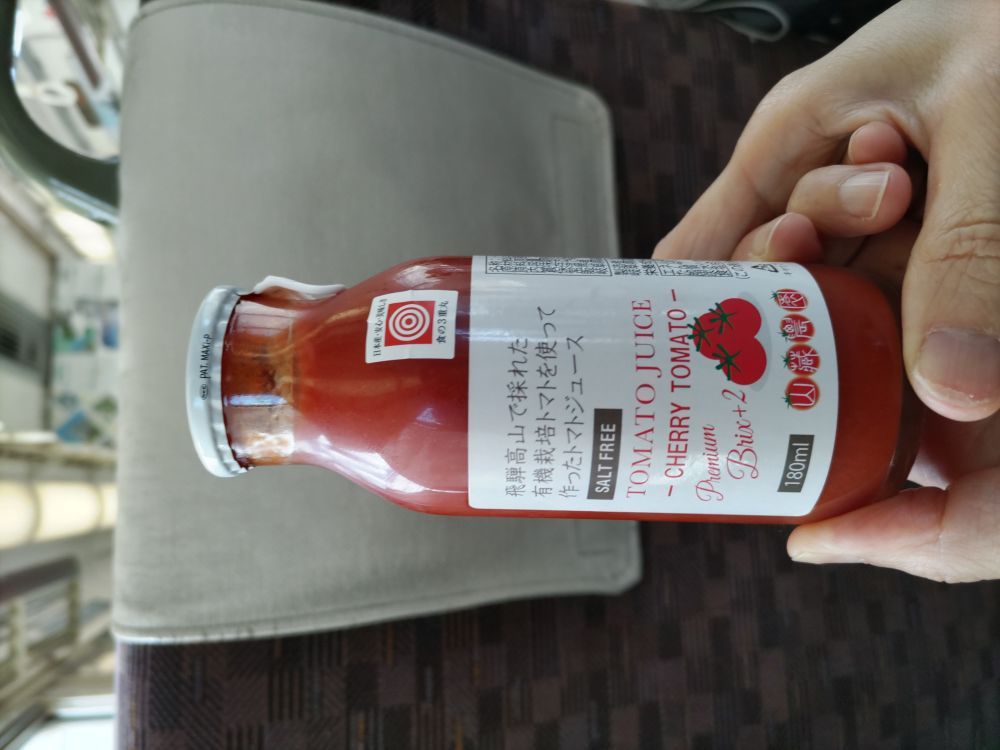 冷やして持ち出し、外で飲みました。冷えたトマトののど越しが気持ち良く、濃厚トマトの栄養分が身体にしみわたる感覚で元気がチャージできました!夏の栄養補給、熱中症予防にピッタリですね。ビンに残ってしまったジュースは水を注いでかき混ぜて余すことなく飲み切りました。ごちそうさまでしたー!