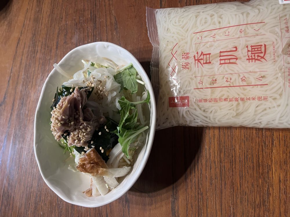 普通のこんにゃく製品はこんにゃく粉100%からできてますが、これは玄米粉からできており普通のこんにゃく麺より風味が良く、美味しいです。