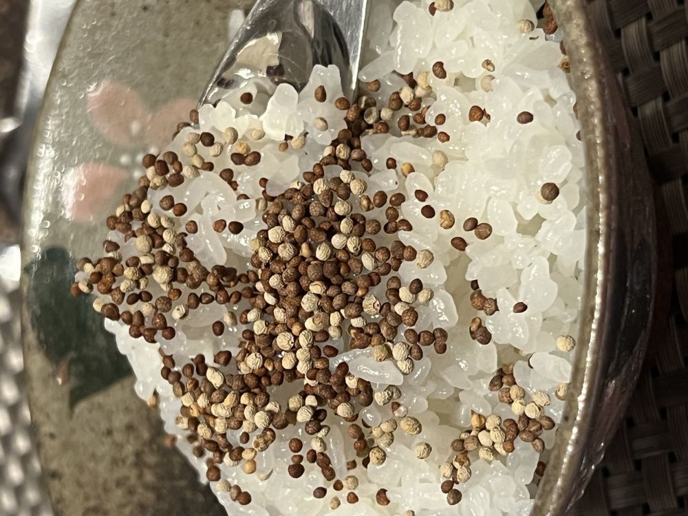 塩を加えて、荏胡麻塩を作り、お赤飯へトッピングは王道。