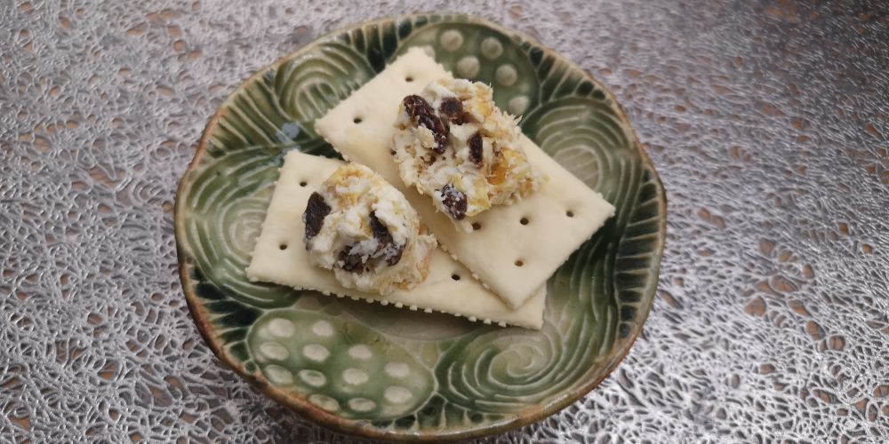 よくドライフルーツは使用するのですが、少し扱いが難しかったです。一口、そのままで食べてみましたが、そのままではない方が良いと思い、果肉部分だけを使用して、クリームチーズ、レーズン、ココナッツと混ぜてみました。レーズンとココナッツのあまみの中にいいアクセントになりとっても美味しかったです!
