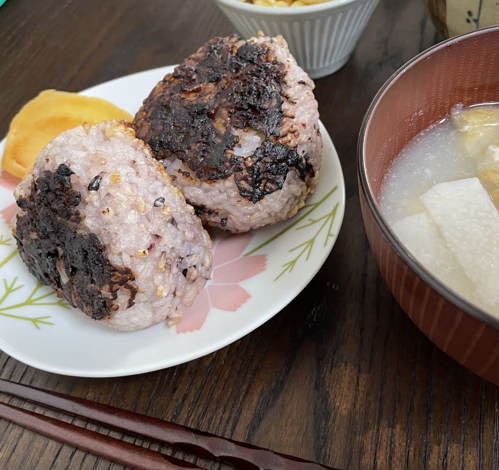 ご愛用のしおりが付いてきて、そこにのっていたの万能みそだれをおにぎりに塗って焼きおにぎりも作ってみました!