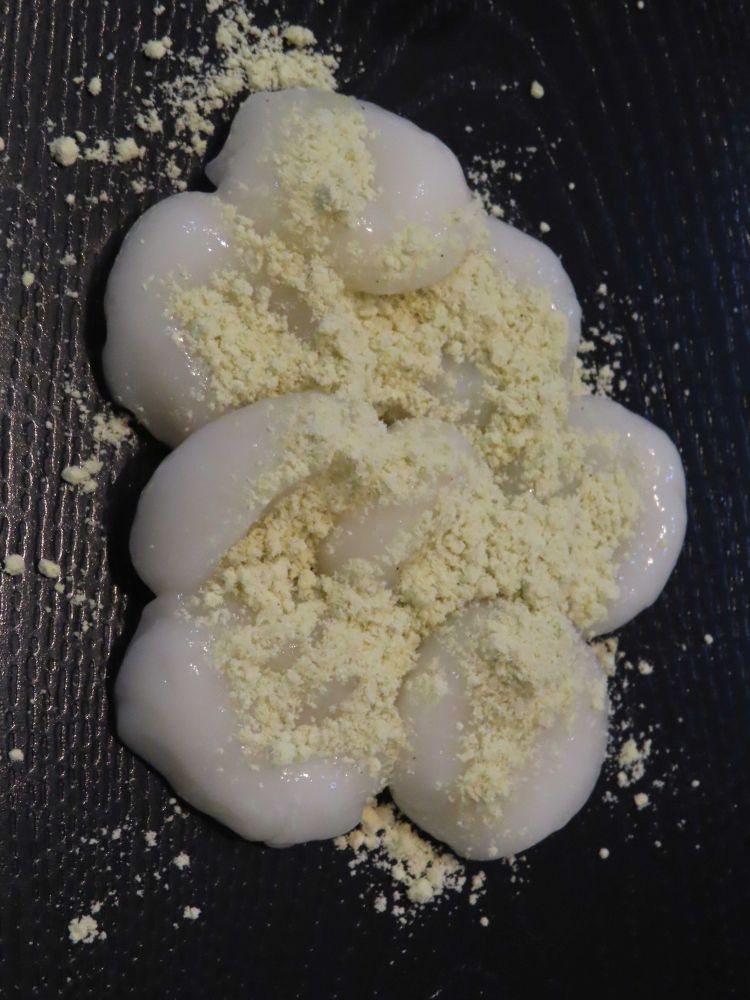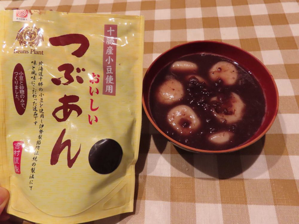 シンプルにうぐいすきな粉をかけて頂くパターンと、ぜんざいに入れて頂く2つのパターンで楽しみました。個人的にはぜんざいで餡にからめて食べる温かい団子の食感が好きです。お餅と違って伸びず、食べやすいです。