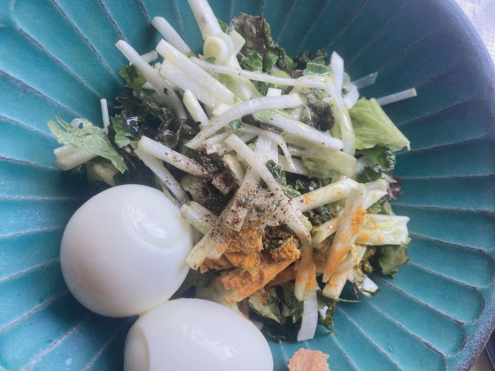 ミョウガの特有なお味がいい感じにまろやかにしてくれて、食べやすくしてくれました。