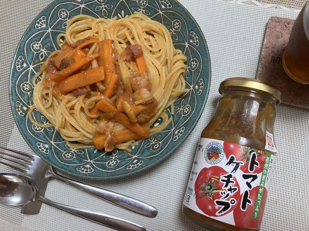 瓶に入っているケチャップは初めてでした!まず自然なトマトの色に安心します。味はとても濃厚。甘味、酸味に加えて、旨みがしっかりあります。今回はナポリタンにしましたが、ケチャップ以外の味付けはシンプルに塩とスパイスのみ、牛乳を加えてコクを加えてあげたらとてもおいしかったです!