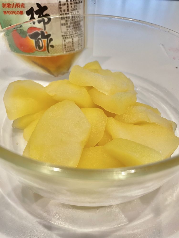 ただの穀物酢でもじゅうぶん美味しく作れますが、柿酢を使った事でスッキリと味わい深い仕上がりになりました。