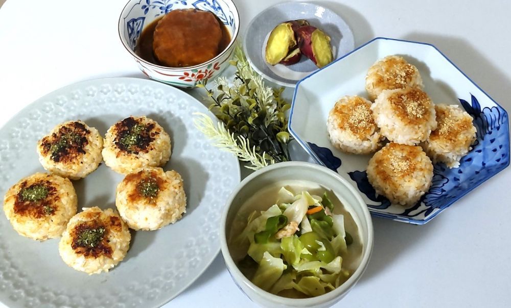 お刺身やステーキに合わせるのは後日のお楽しみとして、今回は焼き醤油おにぎりを作りました。