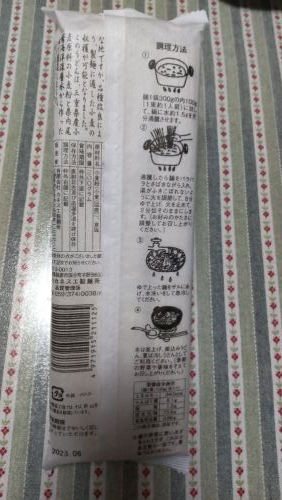 そのまま食べてみると、塩加減が優しい味でした。細〜中太くらいの麺で、弾力性があります。