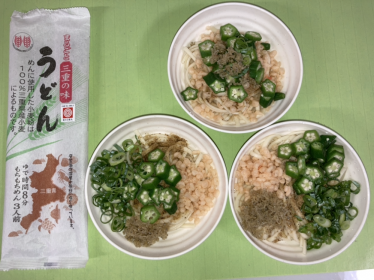 かき揚げ・オクラ・ネギ・茹でナメコ等と一緒に、日本の食に感謝しながら、大変美味しく頂きました。
