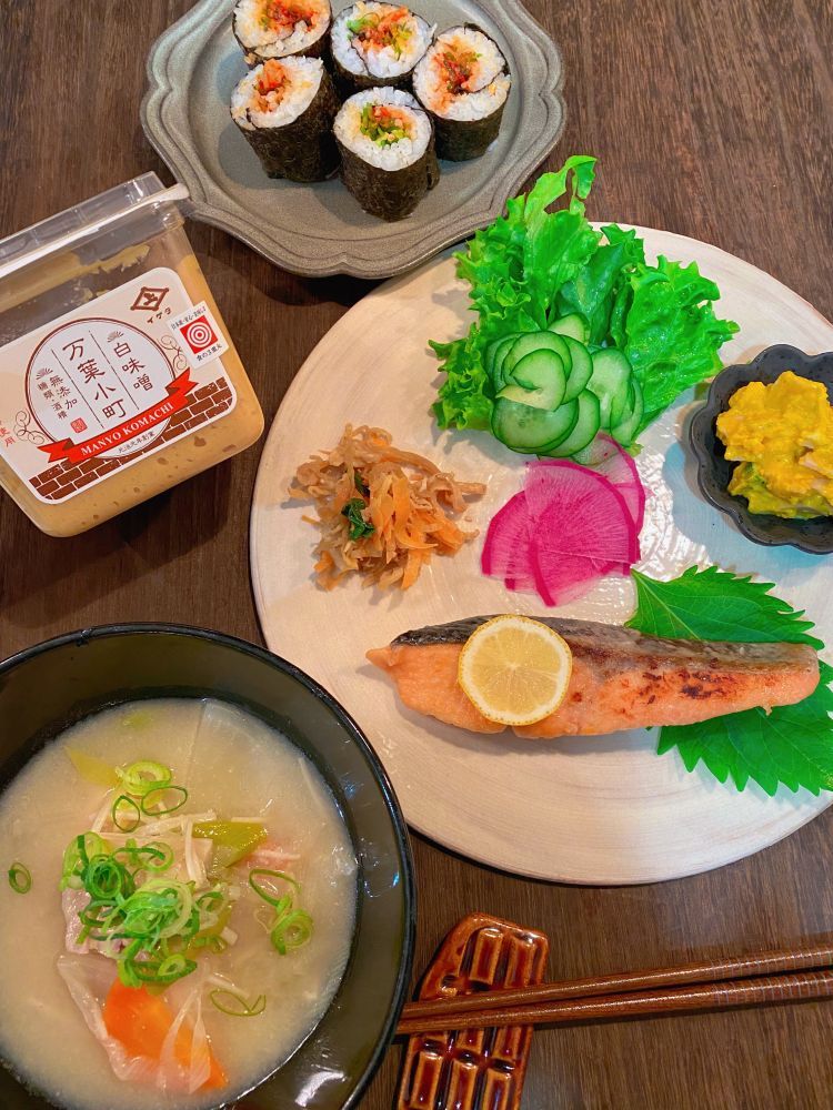 素材の自然な甘みが感じられる美味しいお味噌でした。糖類を使っていないため、糀が醸す柔らかな甘さが特徴的で、酵素の力が強く感じられ、食材の旨味を存分に引き出してくれる素敵なお味噌に出会えました。今回は、お味噌を使って【お野菜たっぷりお味噌汁】【味噌入り卵巻き】を作ってみました。どのお料理も、白味噌の香り、味わいの良さが十分に出て、美味しくいただくことが出来ました。