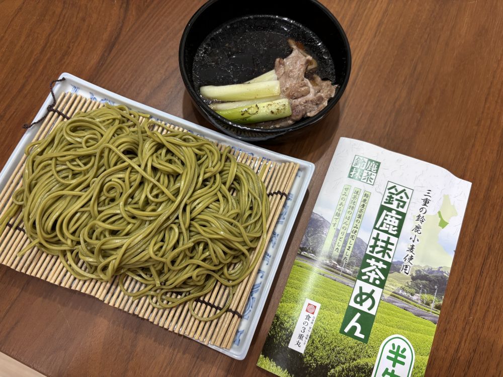 麺を茹でているときに、抹茶の良い香りがしました。ゆで時間もとても短くて、おいしい麺が茹で上がったのがよかったです。あったかいのも冷たいのも両方ともお茶の香りがしておいしかったです。パスタやサラダにもオススメとの事だったので作ってみたのですが、どちらもお茶の香りが負けることなく、どんな料理にも合うかなと思いました。写真を掲載する箇所が3カ所しかなかったのですが、4人前を少し少なめの1人前にして、冷たいぶっかけそばとあったかいかけそばと普通のオーソドックスな冷たいそばの3種類は鴨肉とネギをトッピングして食べました。他には、和風のドレッシングをあえたサラダ麺と、オリーブオイルではなくごま油を使った和風のジェノベーゼパスタ風にして食べました。(試食モニター)