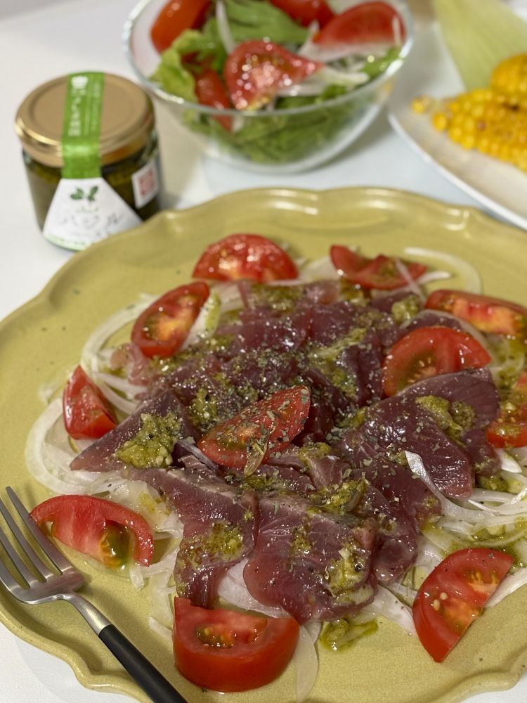 蓋を開けた瞬間からバジルとガーリック、オリーブ油の濃厚な美味しそうな香りがしました。柑橘系の絞り汁とバジルペーストを混ぜてカルパッチョにかけて〜塩気もちょうど良くとても美味しくいただきました〜少量でしっかり味がつけれるので、色んなお料理に活用したいです。(試食モニター)