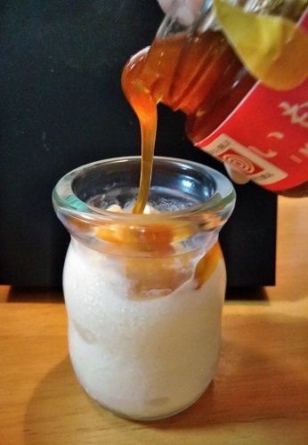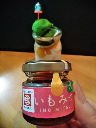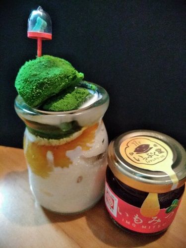 写真のように、プリン容器にバニラアイスを入れ、そこへ「いもみつ」を垂らし、抹茶わらびもちをトッピングさせて食べましたが最高に美味しかったです。